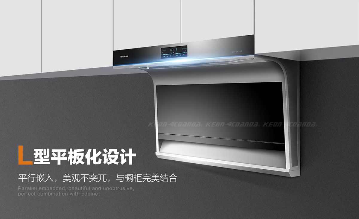 - 特創(chuàng)L型平板化隱形設計,平行嵌入,與櫥柜結合,美觀不突兀。