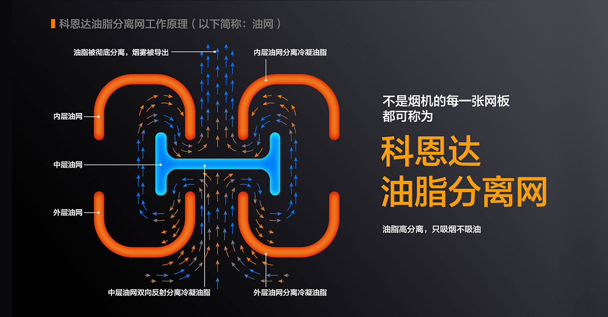 科恩達油脂分離網便捷拆裝設計,表面易潔工藝,拆洗簡單