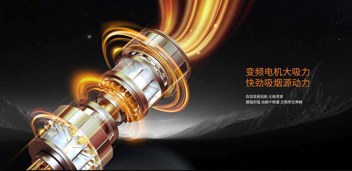 變頻電機大吸力,快勁吸煙源動力,遇強則強,無懼烹飪高峰