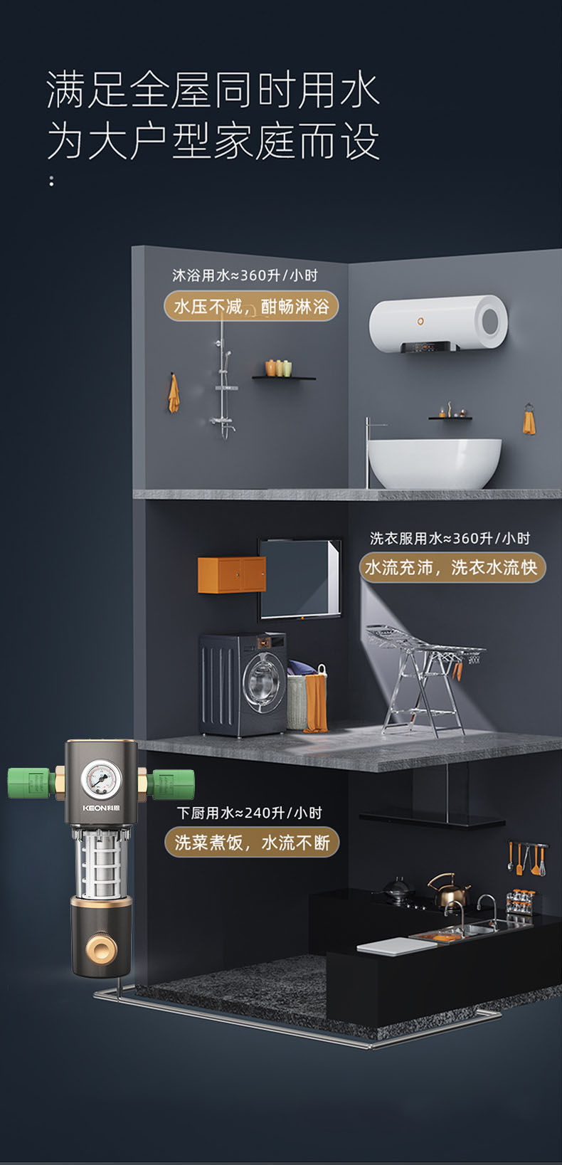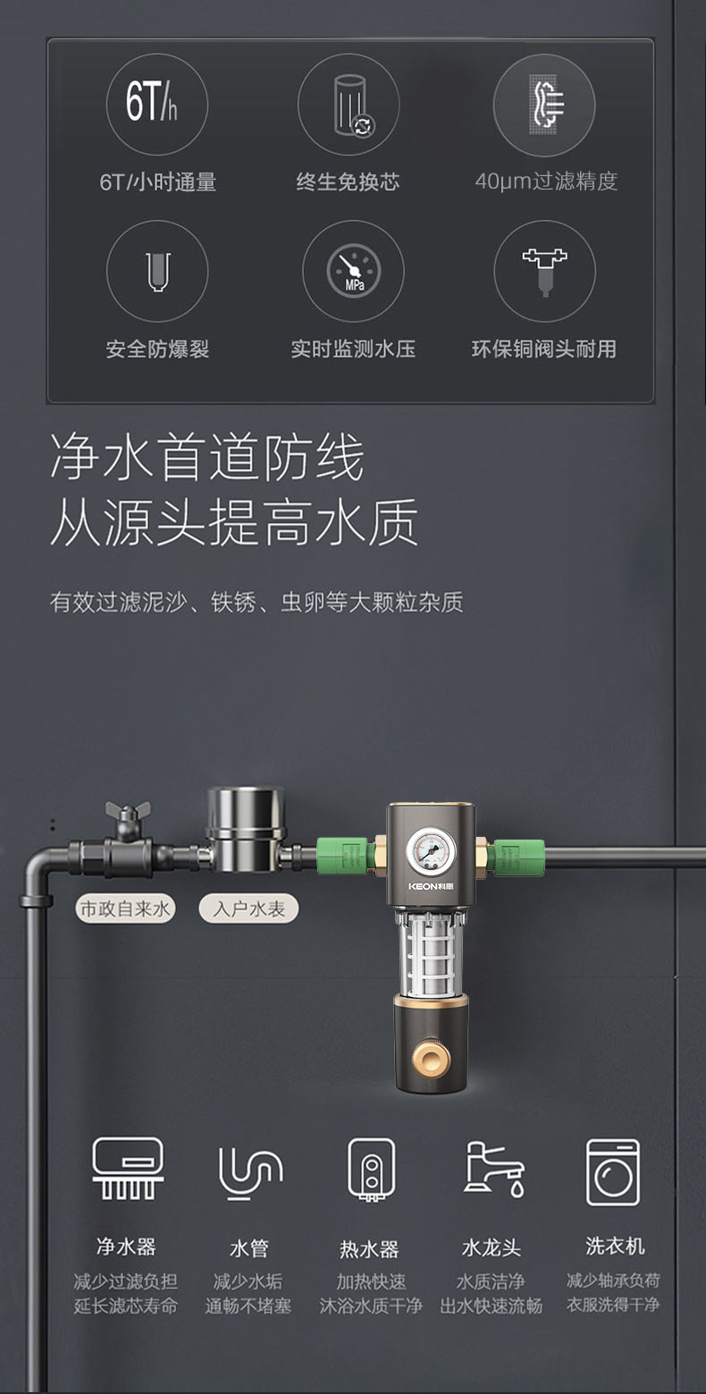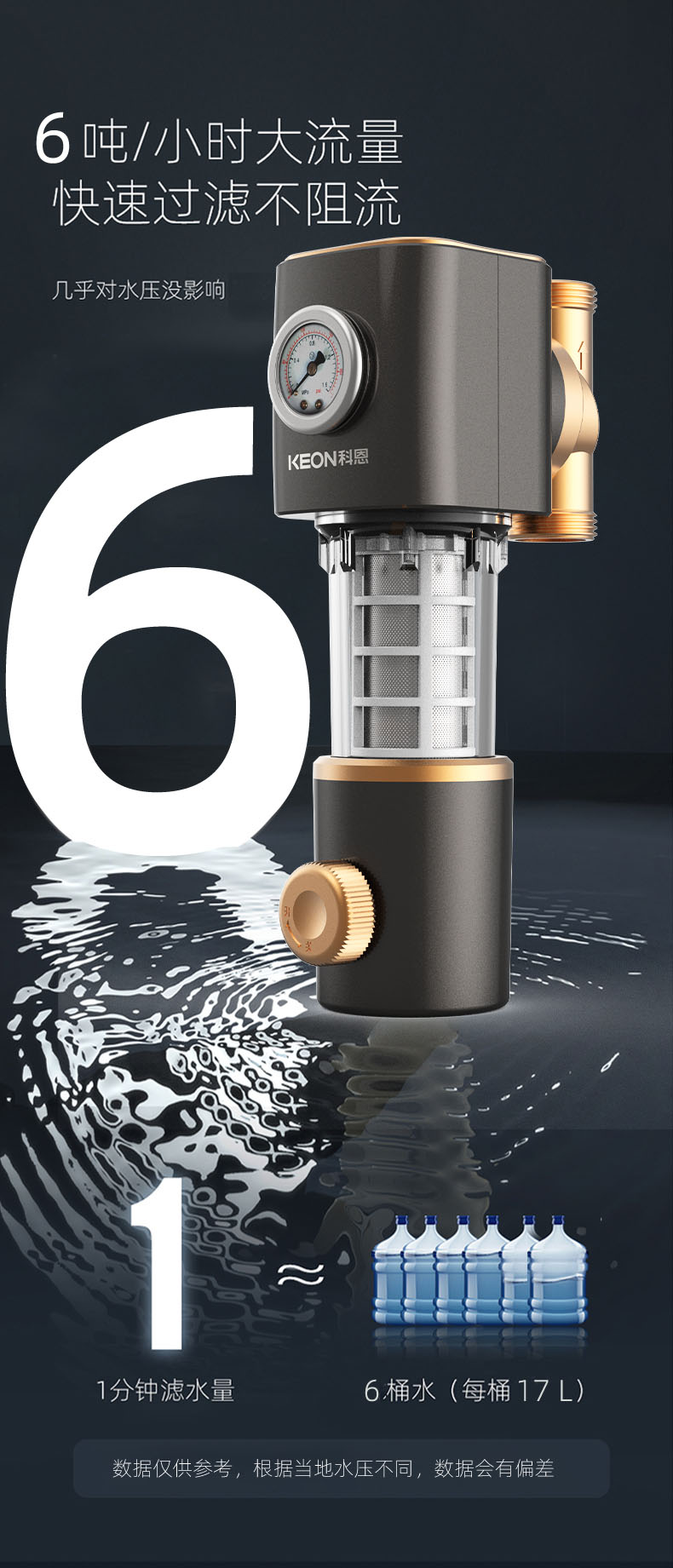 6噸/小時大流量,快速過濾,全屋用水無壓力