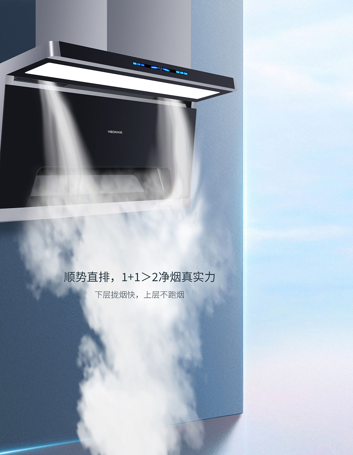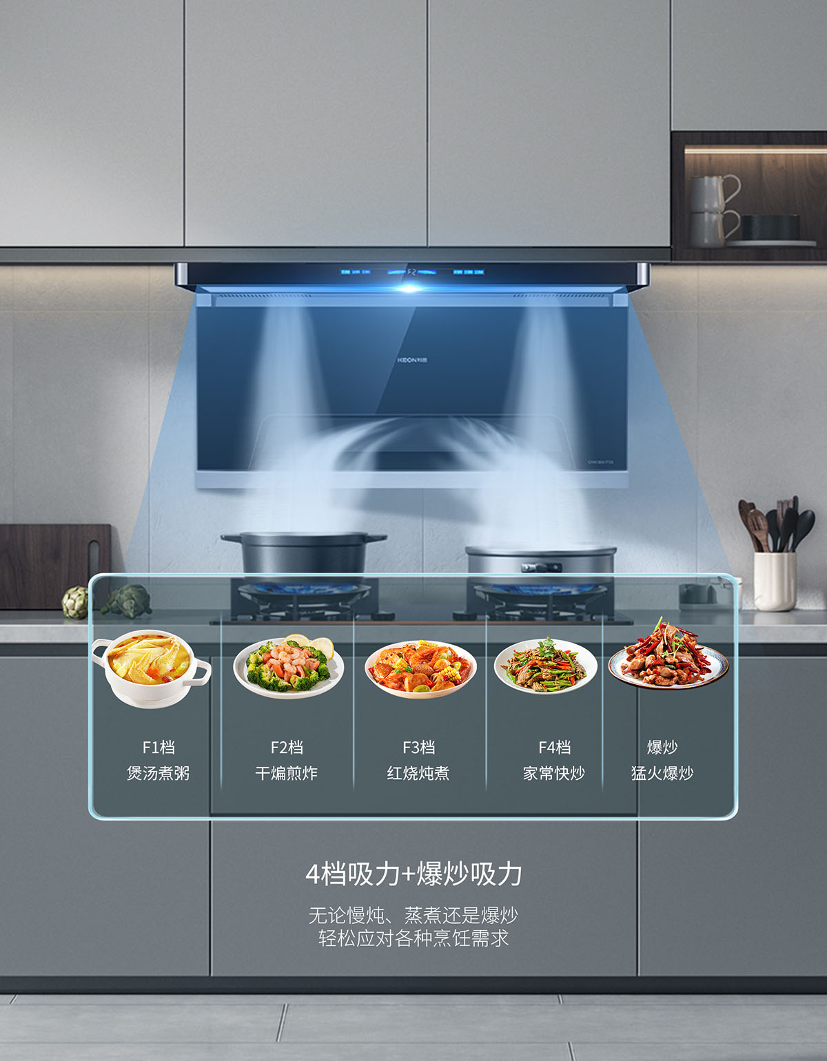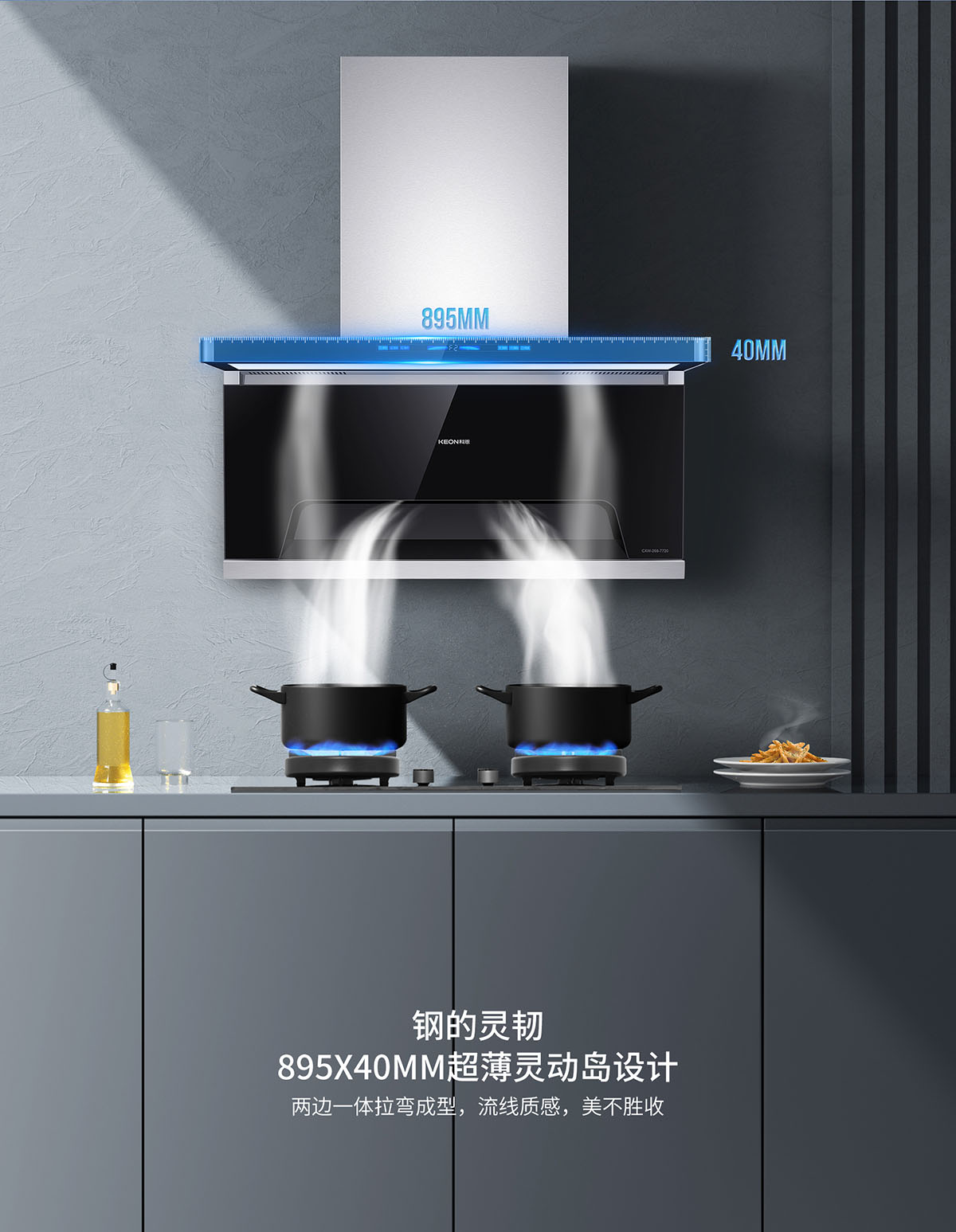 105°仰角攏煙設(shè)計,瘦身大空間,翻炒不碰頭