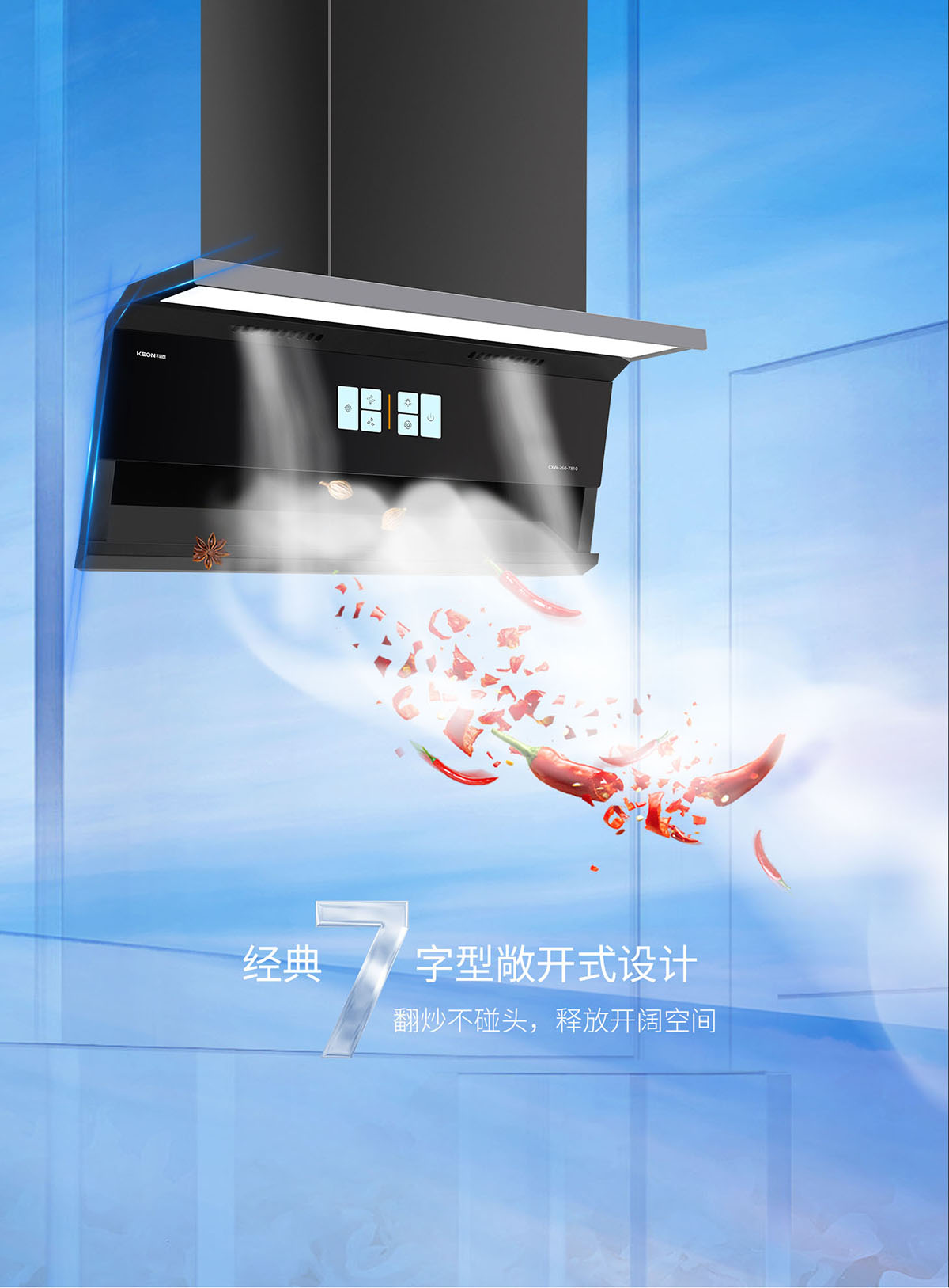 經(jīng)典7字型敞開式設(shè)計,釋放空間,翻炒不碰頭