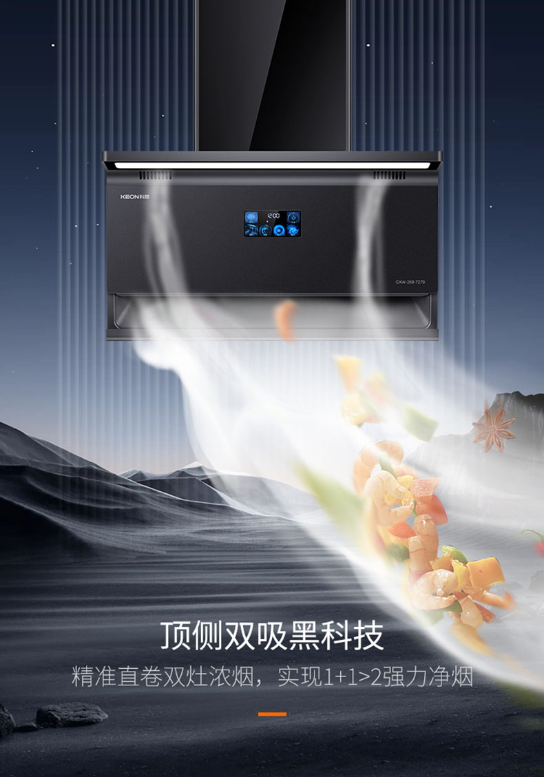 頂側雙吸,精準直卷雙灶濃煙