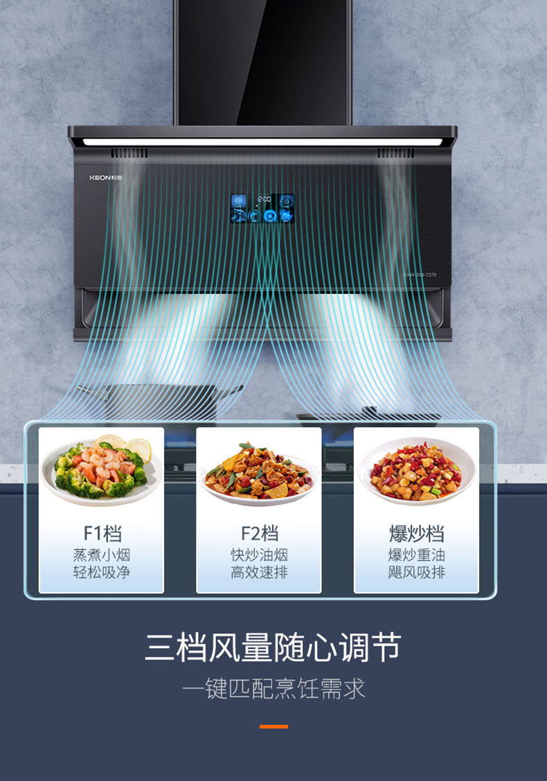 三檔風量隨心調節,一鍵匹配烹飪需求 。