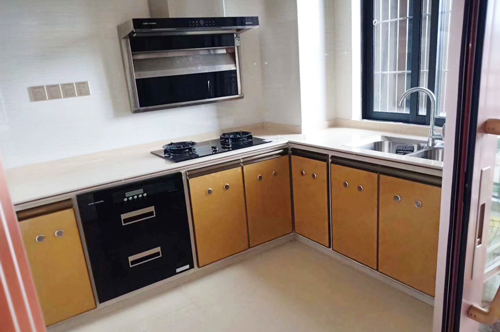科恩湖南經(jīng)銷商提供的T55煙機和不銹鋼水槽廚房實景